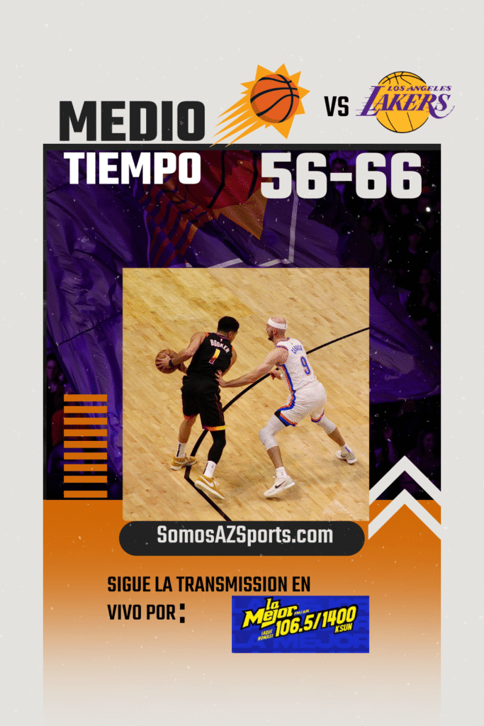 Los Phoenix Suns reciben por segunda ocasion a los Lakers de los Angeles en el Mortage Matchub Center en busca de su decimo sexto triunfo de la temporada y tambien cerrar el 2025 en casa con un triunfo.