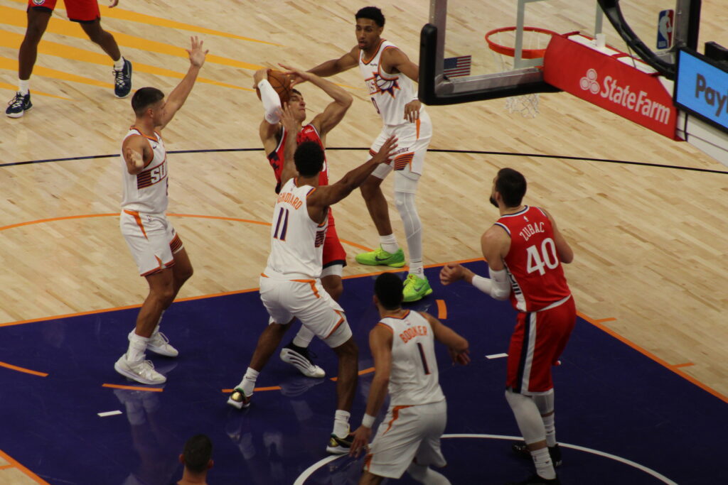 Los Soles jugan inteligentemente sin complicarse en anotar y sin devolvr el balon al rival. Allen, Booker y Beal encestanto y sumando puntos. Allen con 9 tiros de tre de 14 intentos. a los ultimos 2 mins del partido los de casa se van arriba con 21 pts de ventaja. Allen termina con 31 pts, Booker con 20 y Beal con 25 pts. Los Phoenix Suns consiguen su segunda victoria del mes.