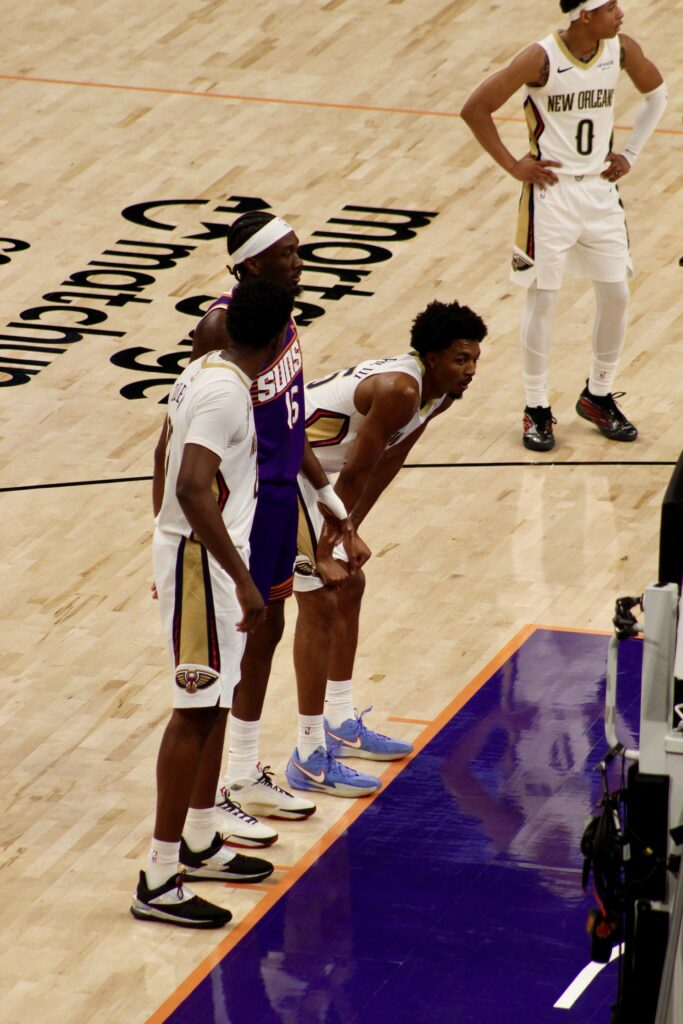 Segundo cuarto y las rotaciones continuan el entrenador Ott no a encontrato los 5 magnificos que puedan dominar el encuentro, a pesar que van parejos en el marcador ningunos de los dos equipos a podido dominar el encuentro o estar arriba en el marvador por ventaja. Al parecer con Maluach, Booker, Dunn O’neal y Green los Suns encontraron ahora si la quimica y van arriba en el marcador 53-46 a 2 minuto del final la ventaja es 9 puntos primera vez en esta primera mitad. 10 tiros de tres puntos son los que llevan los Suns un total de 30 puntos que hacen que ganen el Segundo cuarto 58-52 N.O.