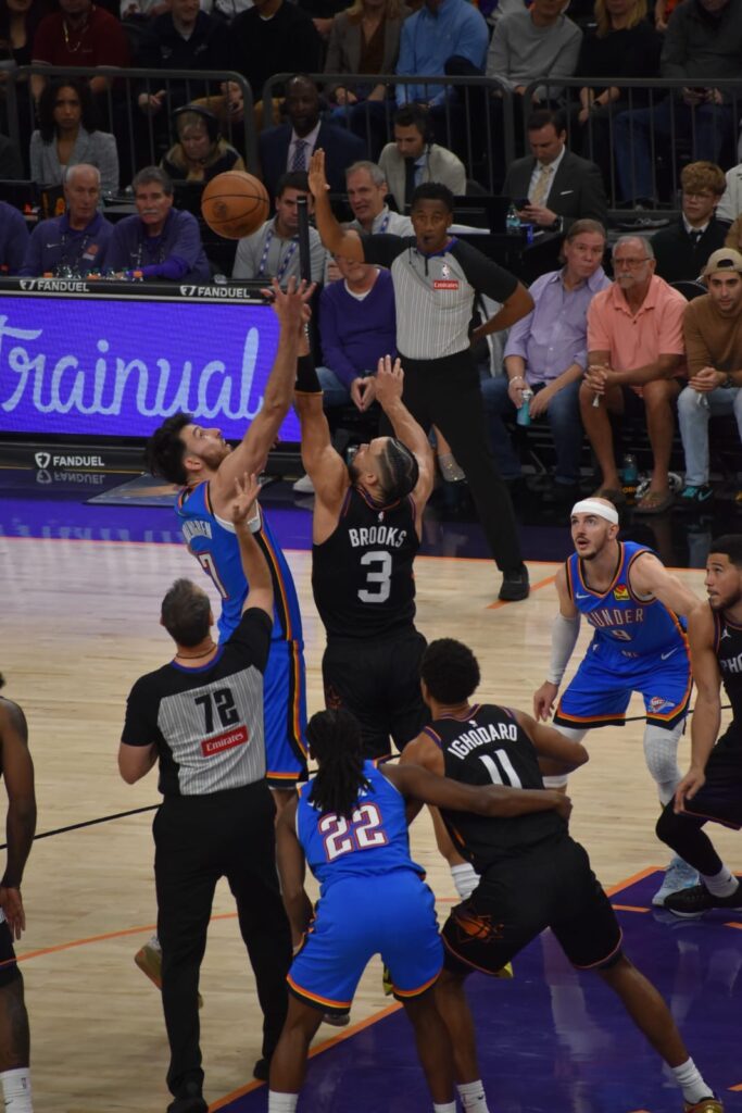 Los titulares para el partido de hoy son: O’Neal, Boker, Brooks, Gillespie y Williams. El Thunder marcando territorio desde el primer cuarto ganando por ahora 21-9, los Suns no han tenido mucho tino en las canasta y ala vez demostrando debilidad al defender.Goodwin anota sus primeros 3 puntos de la noche Los Suns pudieron llegar a 20 puntos para el cierre del primer cuarto pero quedaron cortos ya que Thunder llego a 26.