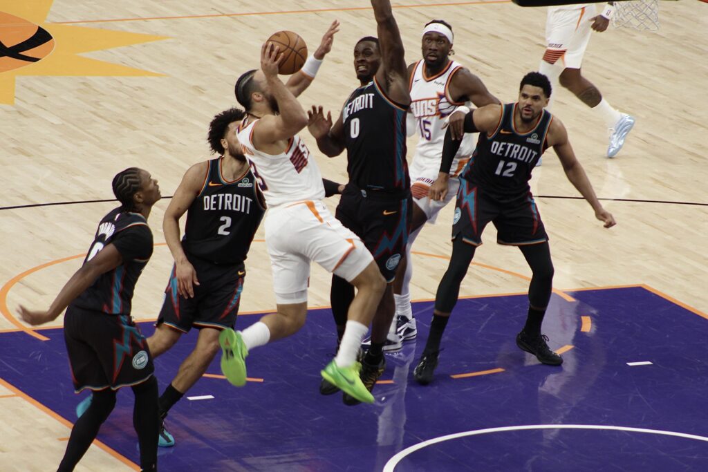 Desde el inicio del partido, los Suns tomaron el control del juego, liderando en los dos primeros cuartos. Brooks fue el motor ofensivo de Phoenix, finalizando la noche con 13 de 22 en tiros de campo, incluidas varias canastas claves que mantuvieron a los Pistons lejos en el marcador. A sus 40 puntos también sumó ocho rebotes, mostrando una actuación dominante en ambos lados de la cancha. Grayson Allen brillo con luz propia con 24 puntos.