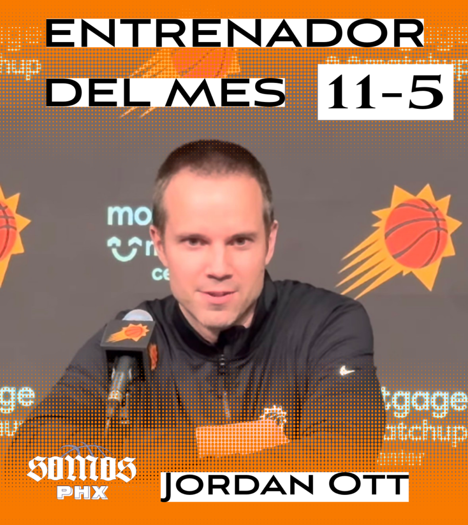 El estratega Jordan Ott a sido nombrado como entrenador del mes de Enero a solo 4 meses de tomar el equipo de los Phoenix Suns. Ott termino el mes de Enero con record de 11 triunfos y 5 derrotas. Sin duda alguna Ott a sabido moldear a un equipo nuevo e incluso con jugadores lesionados pero la quimica que a construido es de aplaudirle.